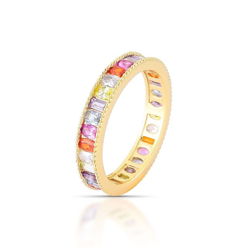 ANEL FINO APARADOR COM PEDRAS CRAVEJADAS ZIRCÔNIAS COLORIDAS