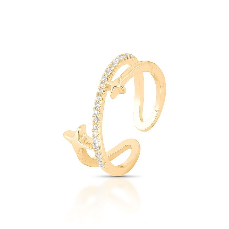 ANEL STAR CRAVEJADO COM ZIRCÔNIAS EM LINHA CURVADA