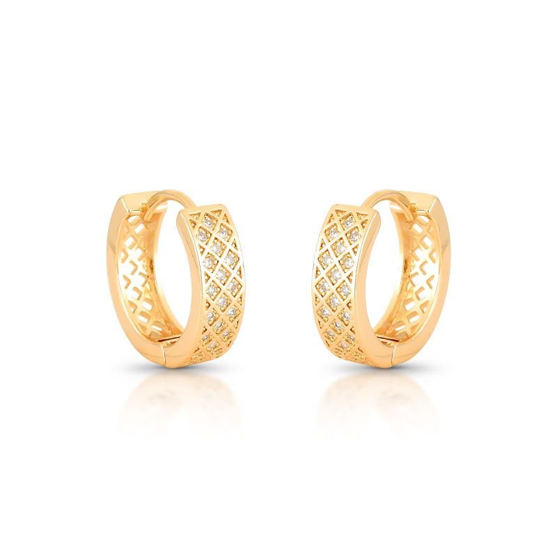 ARGOLA BANHADA EM OURO 18K COM DETALHES GEOMÉTRICOS CRAVEJADOS COM ZIRCÔNIAS