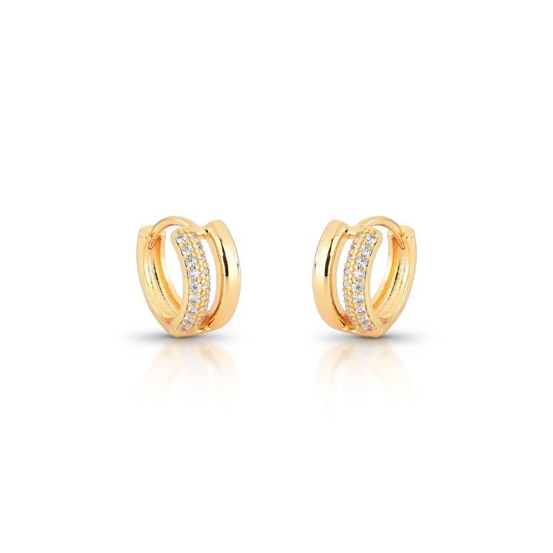 ARGOLA BANHADA EM OURO 18K CRAVEJADA COM PEDRAS ZIRCÔNIAS