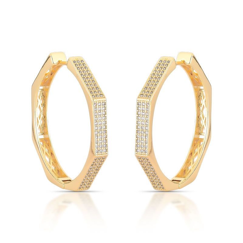 ARGOLA BANHADO EM OURO 18K CRAVEJADA COM PEDRAS ZIRCÔNIAS