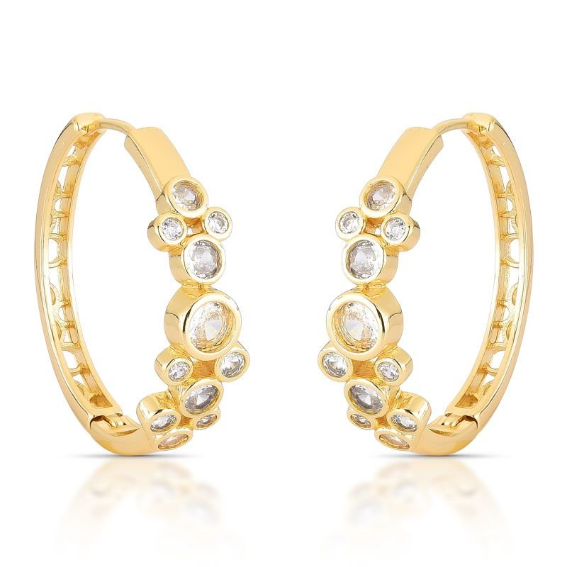 ARGOLA BOLINHAS BANHADA EM OURO 18K CRAVEJADA COM ZIRCÔNIAS