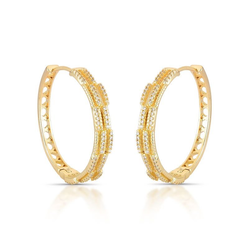 BRINCO ARGOLA CLICK COM PEDRAS CRAVEJADAS ZIRCÔNIAS TRANSPARENTES BANHADO EM OURO 18K