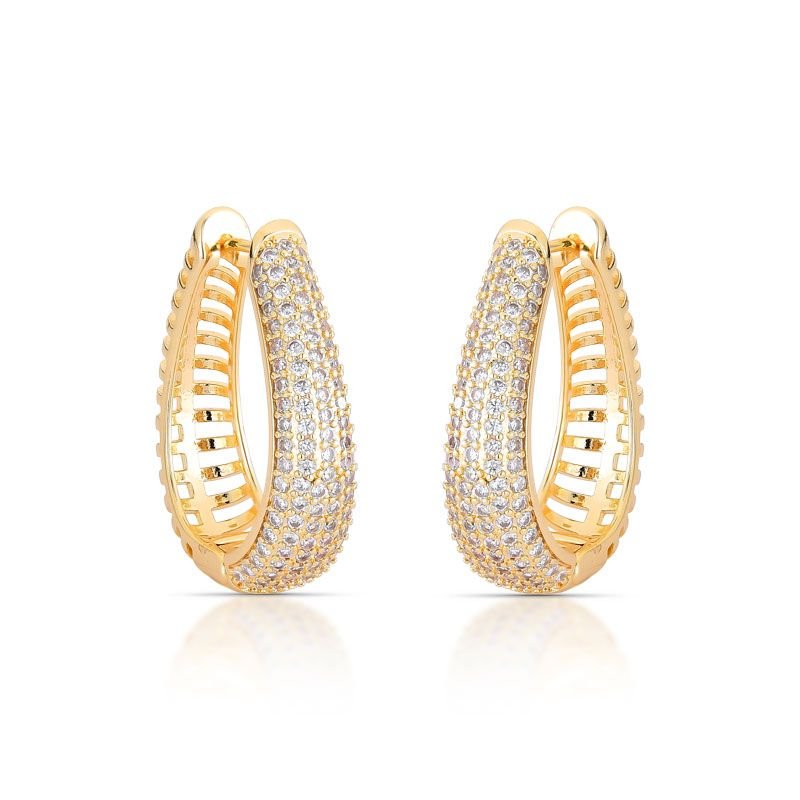 ARGOLA GOTA BANHADA EM OURO 18K CRAVEJADA COM PEDRAS ZIRCÔNIAS NA FRENTE E DETALHES VAZADOS ATRÁS