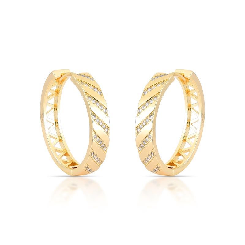 ARGOLA BANHADA EM OURO 18K COM LISTRAS CRAVEJADAS COM PEDRAS ZIRCÔNIAS