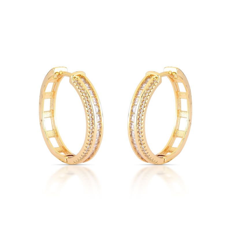 BRINCO ARGOLA MÉDIA COM PEDRAS ZIRCÔNIAS CRAVEJADAS BANHADO EM OURO 18K