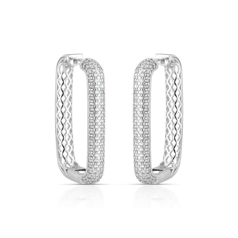 ARGOLA RETANGULAR, BANHADA EM OURO 18K COM DETALHES VASADOS LISOS ATRÁS E CRAVEJADA COM PEDRAS ZIRCÔNIAS NA FRENTE