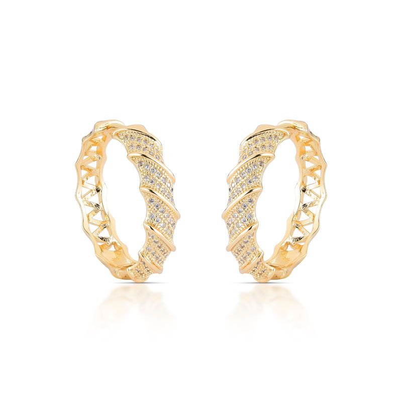 BRINCO ARGOLA TRAÇOS COM PEDRAS CRAVEJADAS ZIRCÔNIAS BANHADO EM OURO 18K