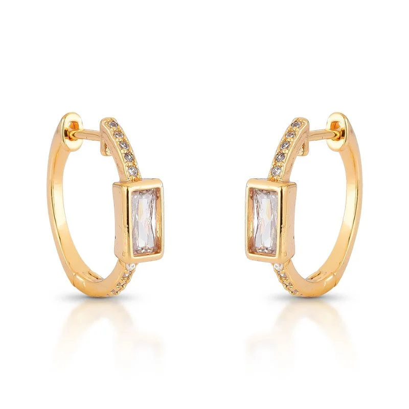 BRINCO ARGOLA FINA DETALHE RETÂNGULO COM PEDRAS CRAVEJADAS ZIRCÔNIAS TRANSPARENTES