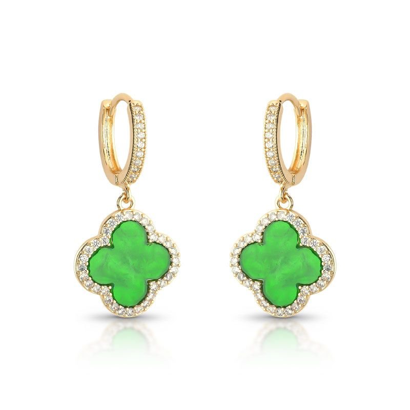 BRINCO ARGOLINHA COM PINGENTE FLOR TREVO PEDRAS CRAVEJADAS ZIRCÔNIAS