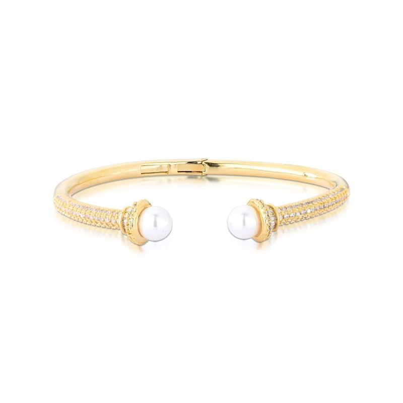 BRACELETE ABERTO COM PEDRAS CRAVEJADAS ZIRCÔNIAS PÉROLAS