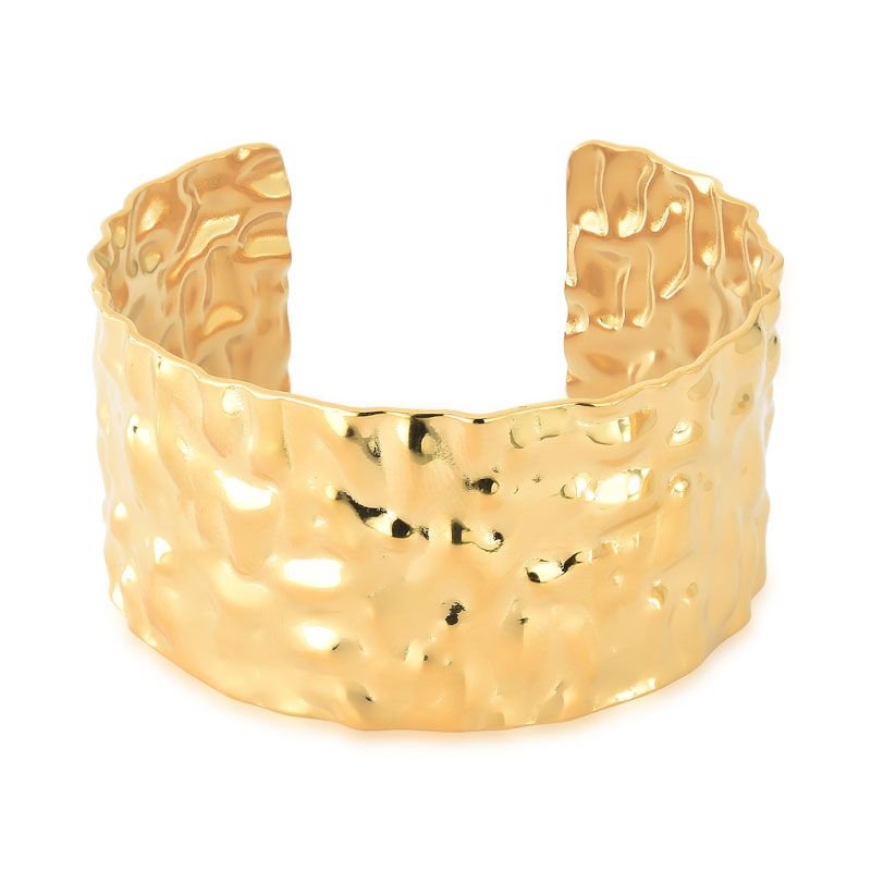 BRACELETE ABERTO MARTELADO EM AÇO BANHADO EM OURO 18K