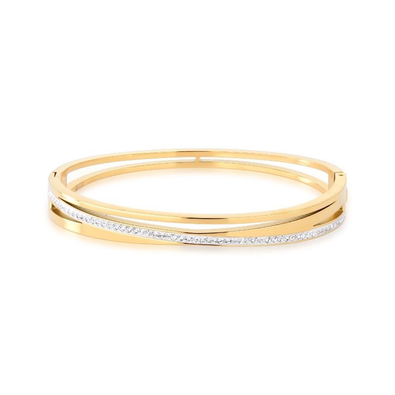 BRACELETE DOURADO EM AÇO COM PEDRAS TRANSPARENTES
