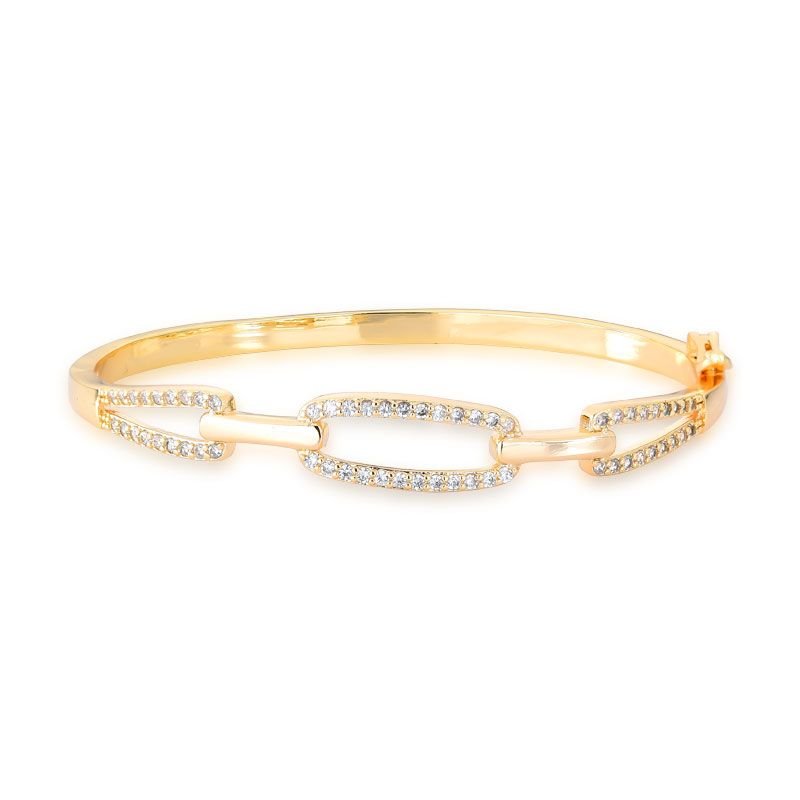 BRACELETE ELOS BANHADO EM OURO 18K CRAVEJADO COM PEDRAS ZIRCÔNIAS WHITE