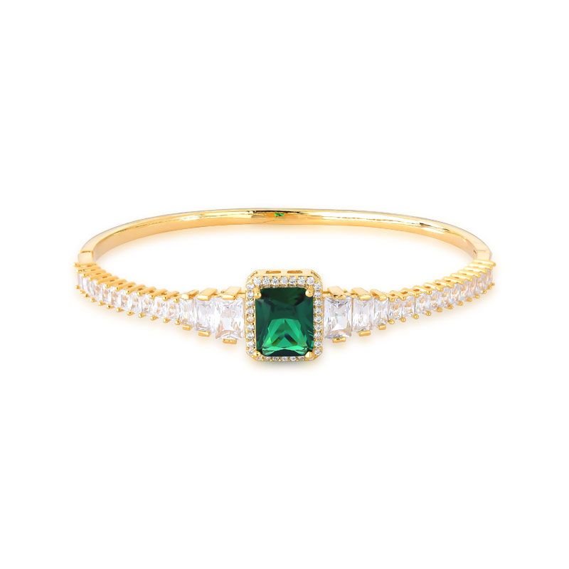 BRACELETE BANHADO A OURO 18K CRAVEJADO COM PEDRAS ZIRCÔNIAS WHITE E ESMERALDA