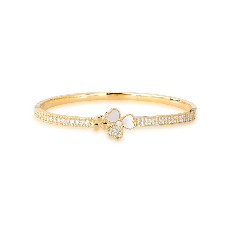 BRACELETE FLOR TREVO DOURADO BANHADO EM OURO 18K CRAVEJADO ZIRCÔNIAS E DETALHE ESMALTADO