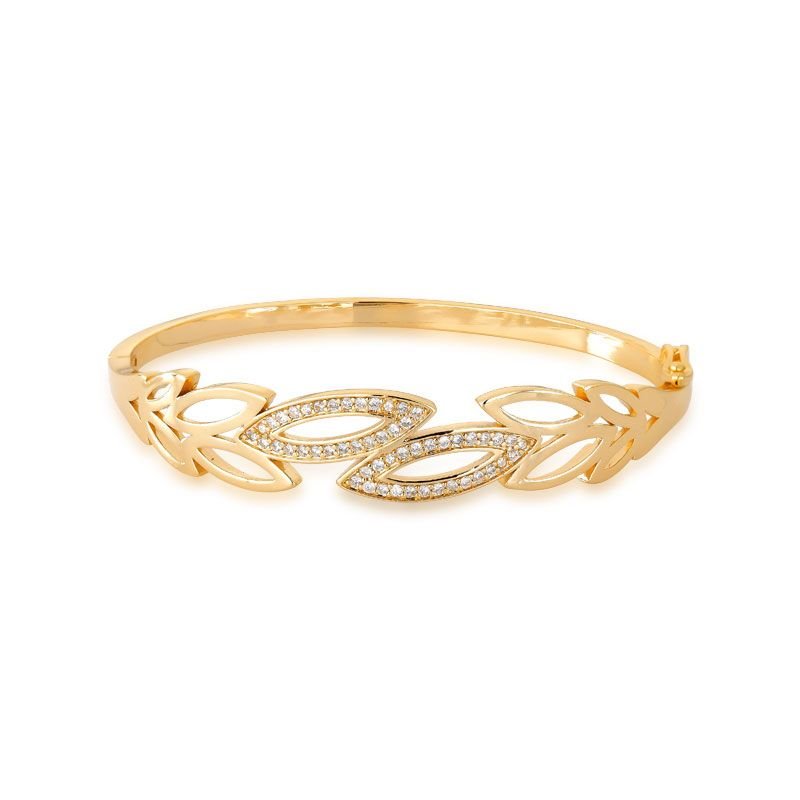 BRACELETE FOLHAS BANHADO EM OURO 18K CRAVEJADO COM PEDRAS ZIRCÔNIAS WHITE