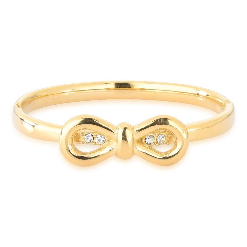 BRACELETE LAÇO COM PEDRAS AÇO BANHADO EM OURO 18K