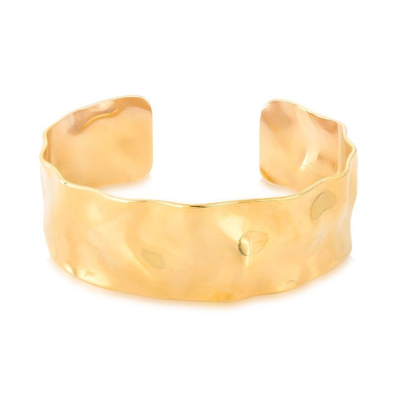 BRACELETE LISO ABERTO MARTELADO AÇO BANHADO EM OURO 18K