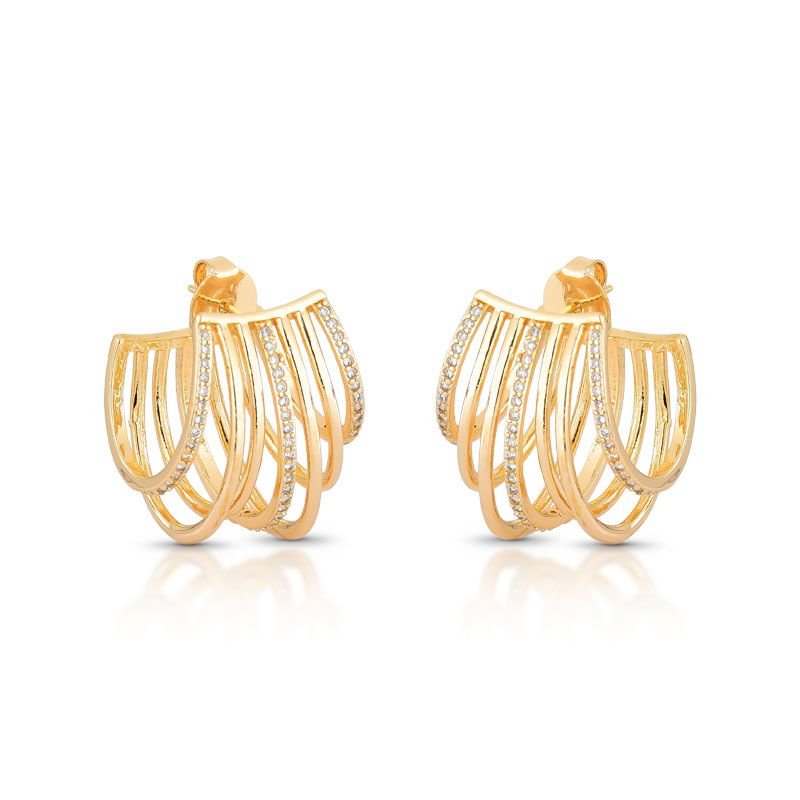BRINCO BANHADO EM OURO 18K COM 7 FIOS, SENDO 4 LISOS E 3 CRAVEJADOS COM PEDRAS ZIRCÔNIAS