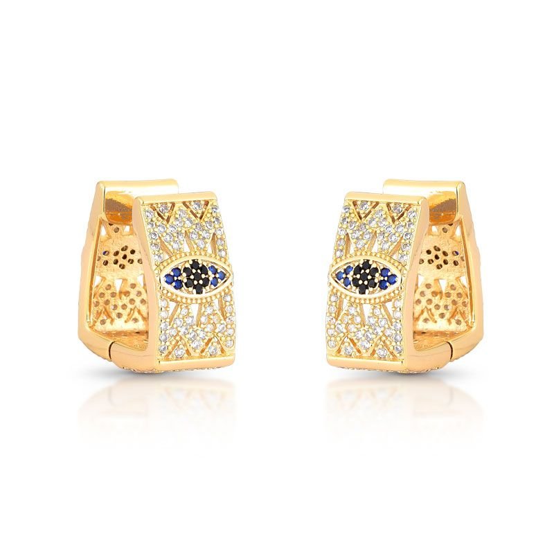BRINCO ARGOLA GROSSA CRAVEJADA COM PEDRAS CRAVEJADAS ZIRCÔNIAS BANHADO EM OURO 18K