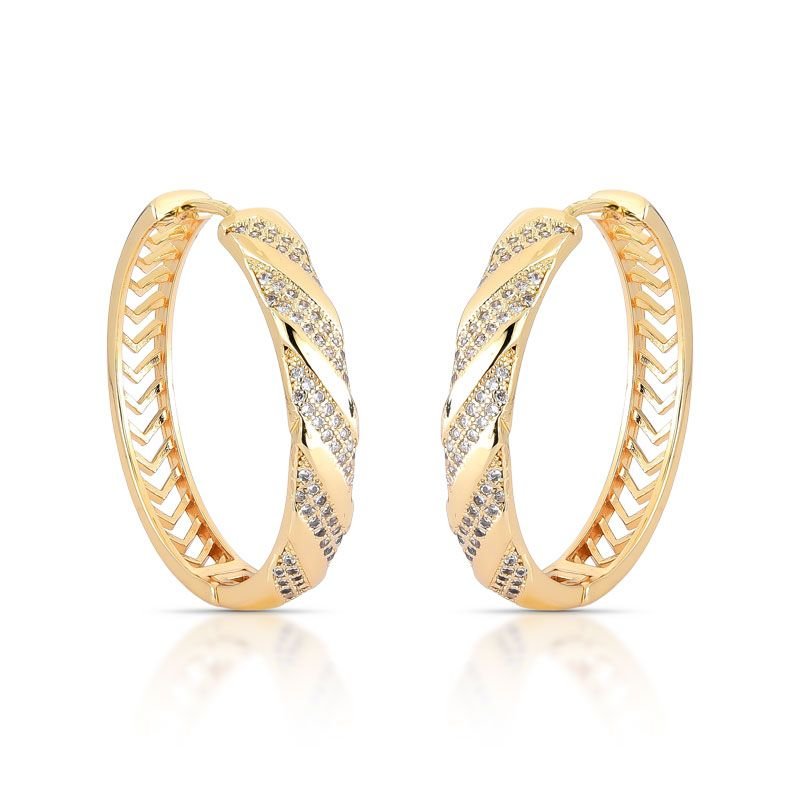 BRINCO ARGOLA LISO E CRAVEJADO COM PEDRAS ZIRCÔNIAS BANHADO EM OURO 18K