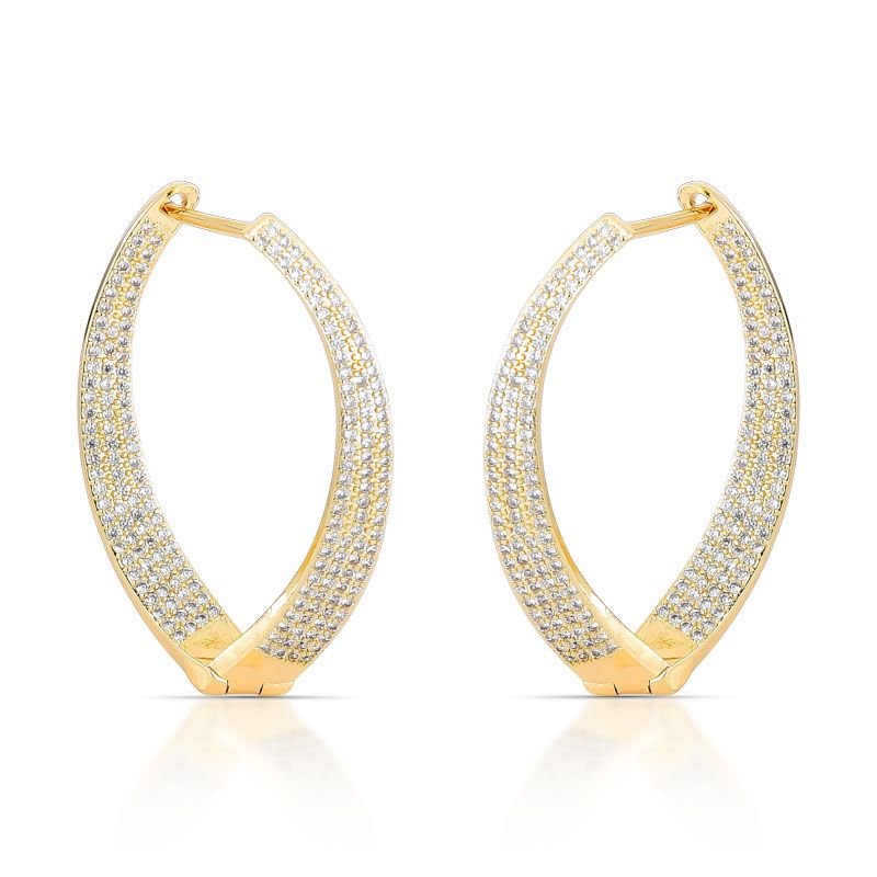 BRINCO ARGOLA OVAL DOURADO BANHADO EM OURO 18K COM PEDRAS CRAVEJADAS ZIRCÔNIAS TRANSPARENTES