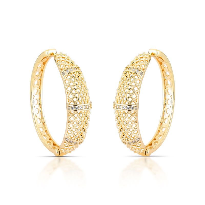 BRINCO ARGOLA COM DETALHES VAZADOS E PEDRAS CRAVEJADAS ZIRCÔNIA BANHADO EM OURO 18K