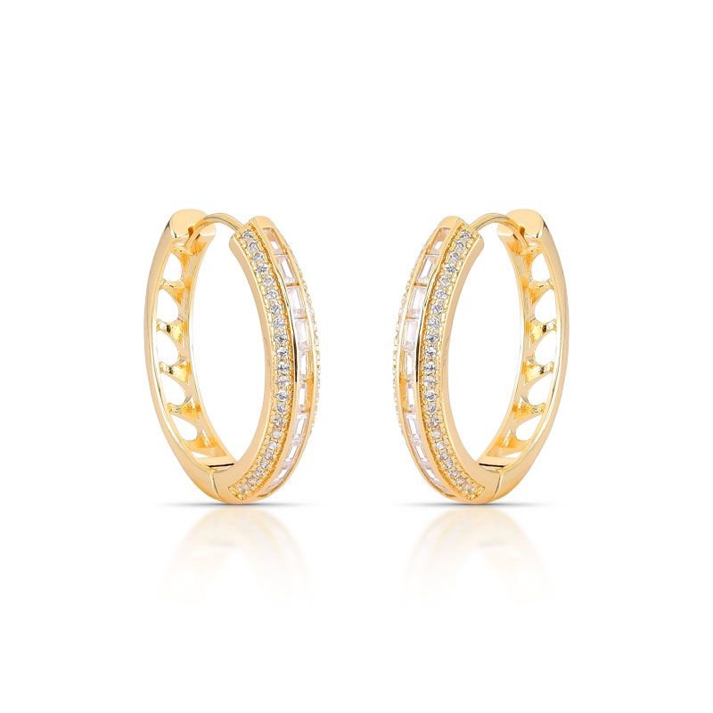 BRINCO ARGOLA MÉDIA COM PEDRAS ZIRCÔNIAS CRAVEJADAS