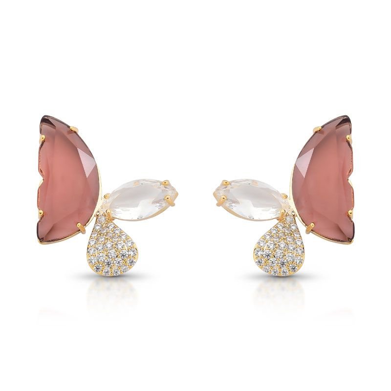 BRINCO BORBOLETA COM PEDRA CRAVEJADA VINHO BANHADO EM OURO 18K