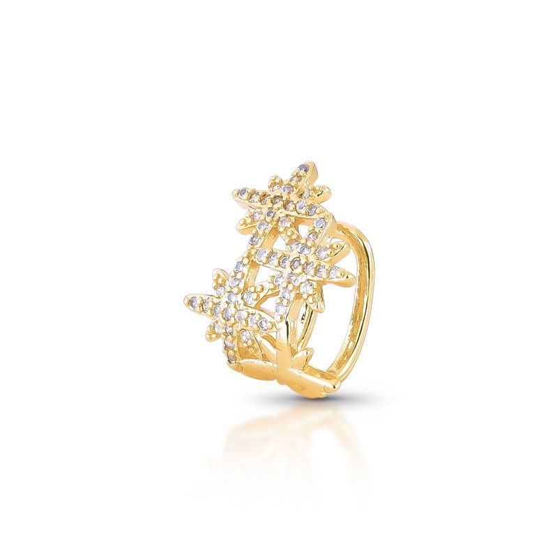 BRINCO EAR CLIP PIERCING FAKE ESTRELAS COM PEDRAS TRANSPARENTES CRAVEJADAS BANHADO EM OURO 18K