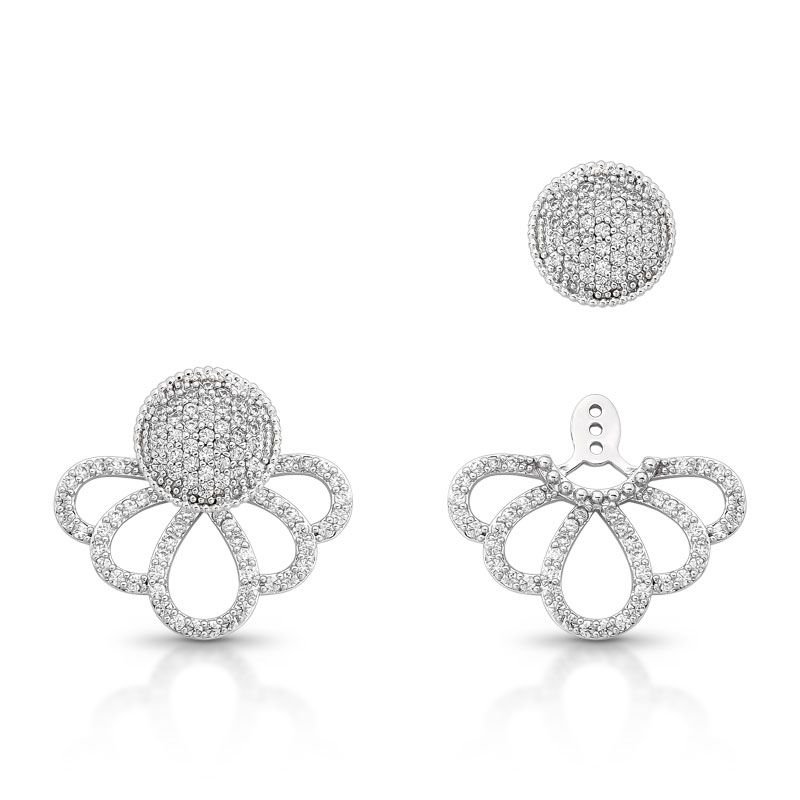 BRINCO EAR JACKET 2 EM 1 COM ESFERA CENTRAL E DETALHES EM ESPIRAL CRAVEJADO COM PEDRAS ZIRCÔNIAS