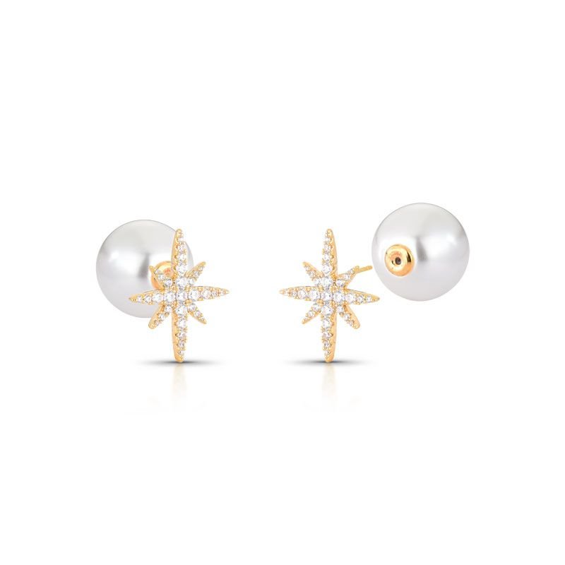 BRINCO EAR JACKET ESTRELA PÉROLA COM PEDRAS CRAVEJADAS ZIRCÔNIAS TRANSPARENTES