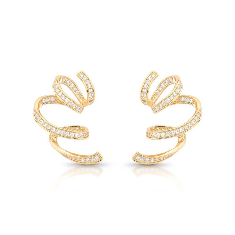 BRINCO ENTRELAÇADO DOURADO BANHADO EM OURO 18K COM PEDRAS CRAVEJADAS
