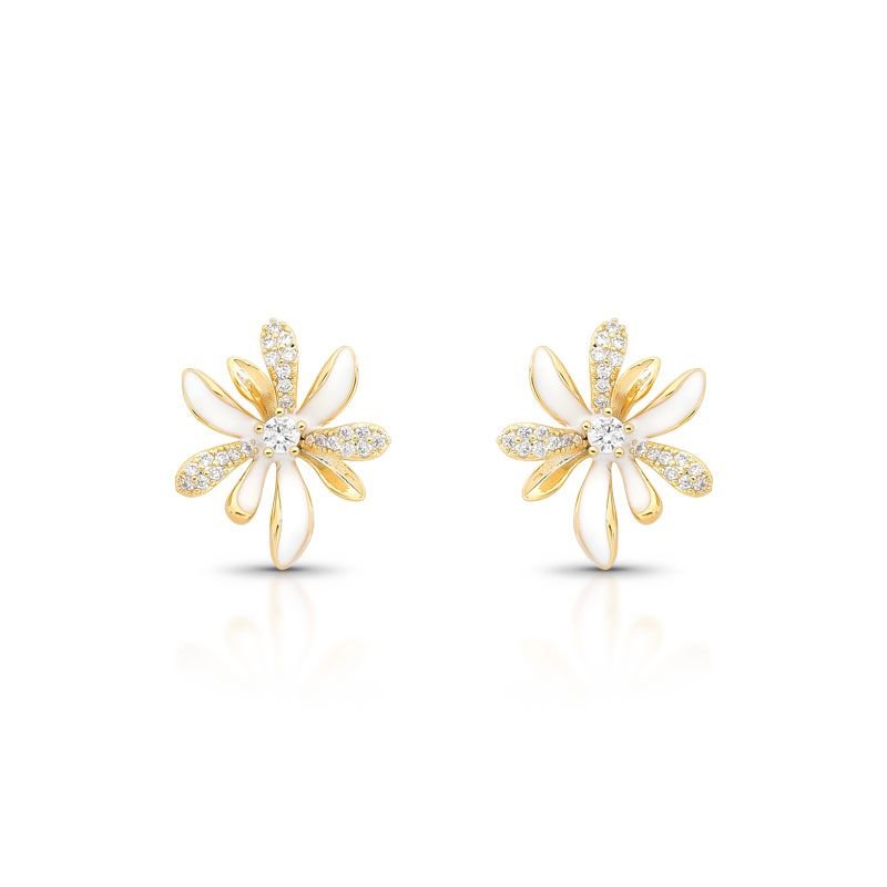 BRINCO FLORES ESMALTADO BANHADO EM OURO 18K COM DETALHES EM ZIRCÔNIA