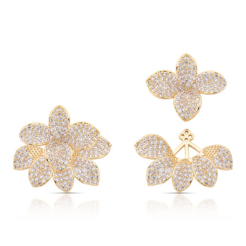BRINCO FLOR EAR JACKET COM PEDRAS CRAVEJADAS ZIRCÔNIAS