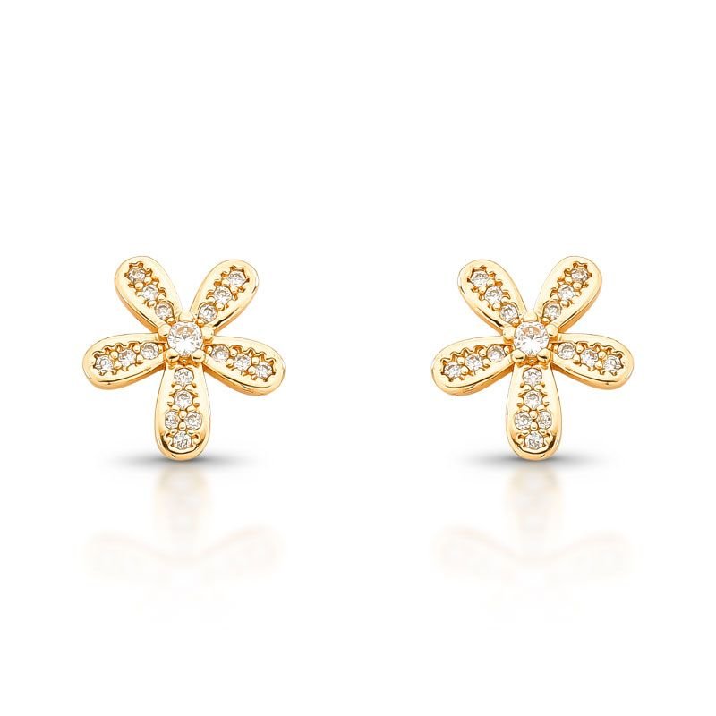 BRINCO FLOR PEQUENA COM PEDRAS CRAVEJADAS DOURADO BANHADO EM OURO 18K