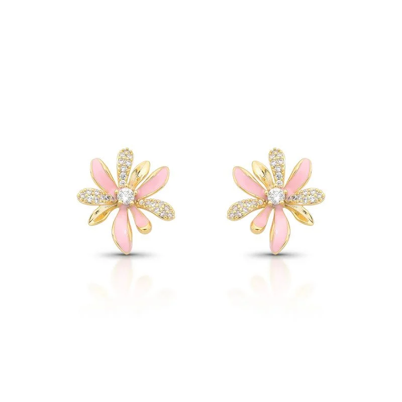 BRINCO FLORES ESMALTADO BANHADO EM OURO 18K COM DETALHES EM ZIRCÔNIA