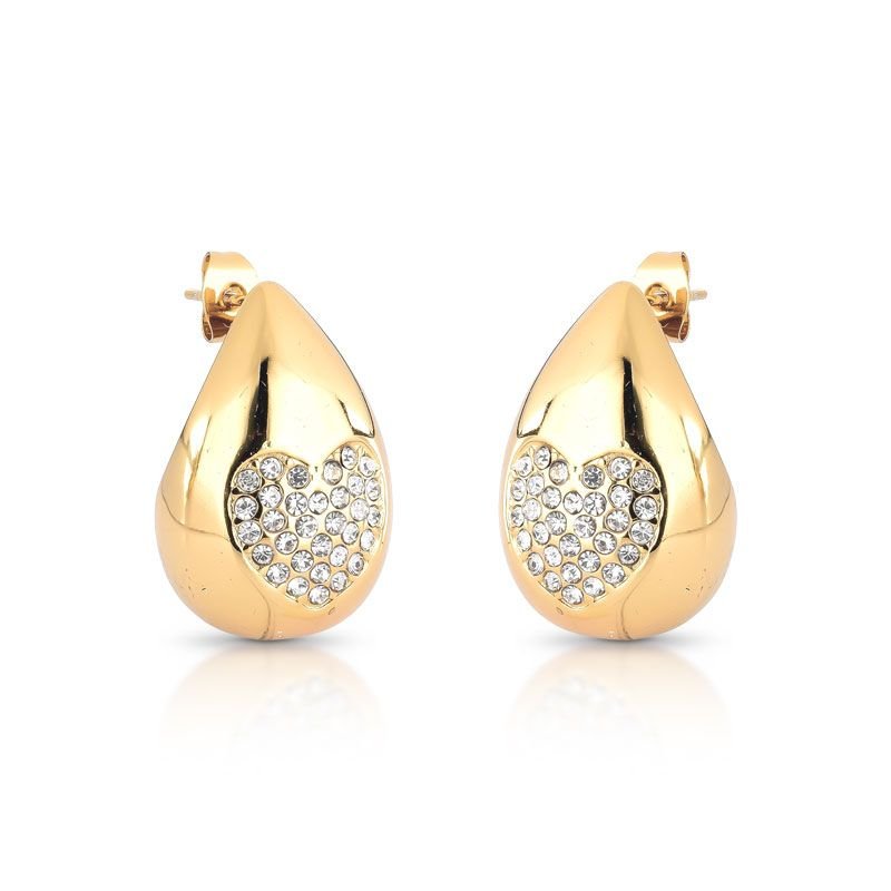 BRINCO GOTA LISO EM AÇO COM CORAÇÃO PEDRAS BANHADO EM OURO 18K