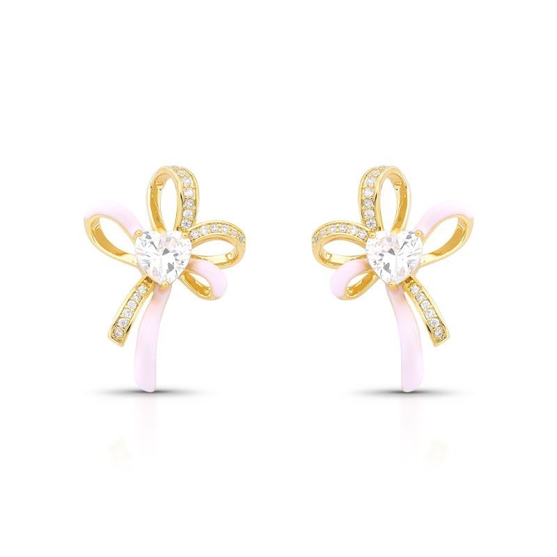 BRINCO EM FORMA DE LAÇO BANHADO EM OURO 18K CRAVEJADO COM ZIRCÔNIAS