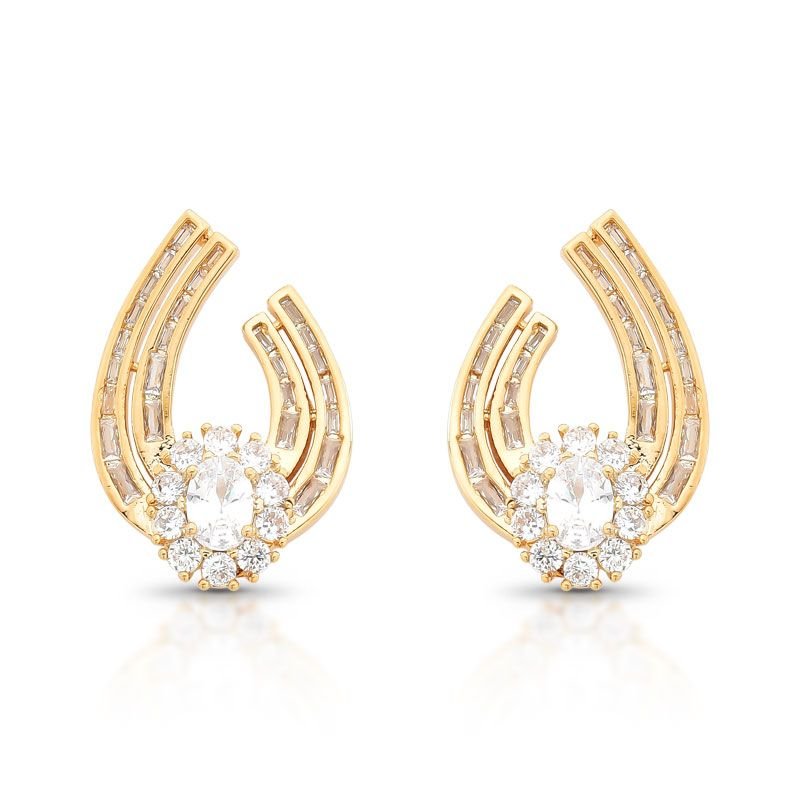 BRINCO MEIA ARGOLA DUPLA COM PEDRAS CRAVEJADAS ZIRCÔNIAS BANHADO EM OURO 18K