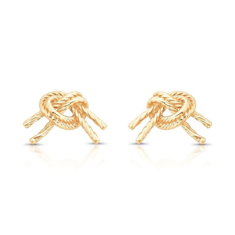 BRINCO NÓ LISO COM TEXTURAS EM LINHAS EM AÇO BANHADO EM OURO 18K