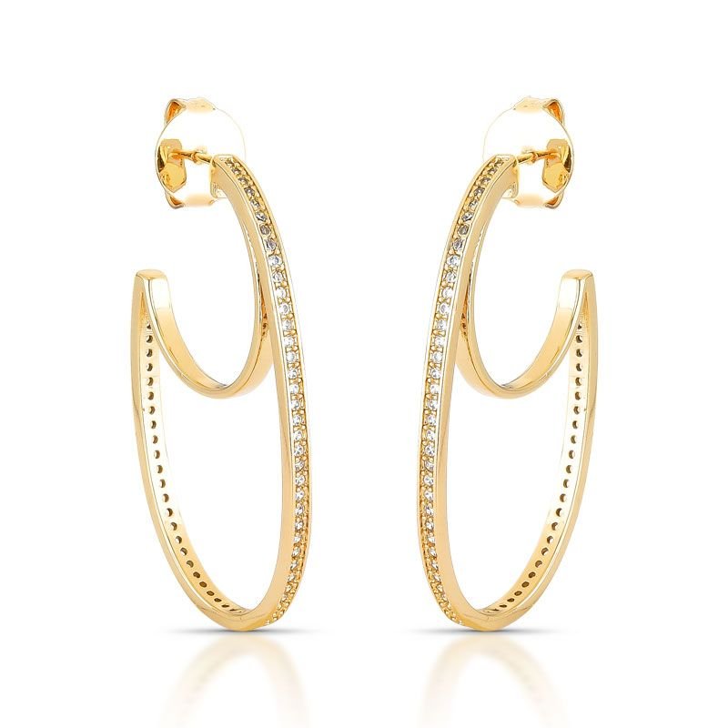 BRINCO ORGÂNICO BANHADO EM OURO 18K CRAVEJADO COM PEDRAS ZIRCÔNIAS