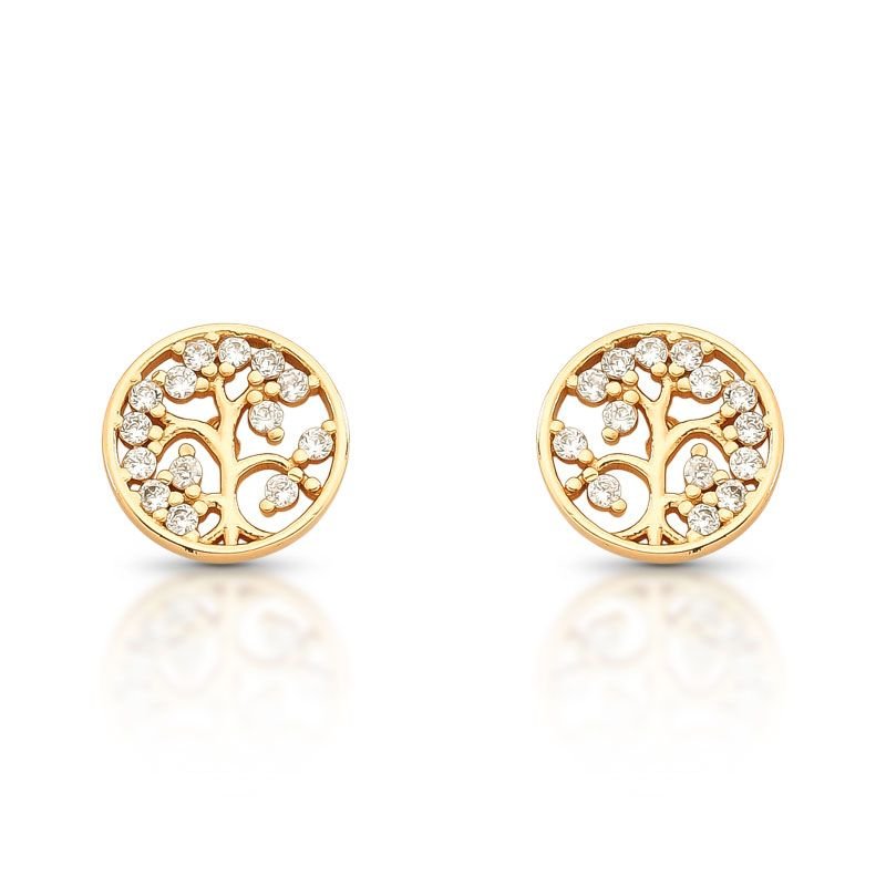 BRINCO REDONDO PEQUENO ÁRVORE DA VIDA BANHADO EM OURO 18K COM PEDRAS CRAVEJADAS ZIRCÔNIAS TRANSPARENTES