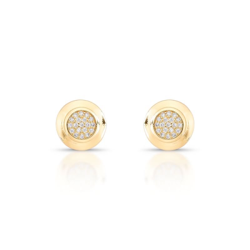 BRINCO PEQUENO REDONDO COM PEDRAS CRAVEJADAS ZIRCÔNIAS BANHADO EM OURO 18K