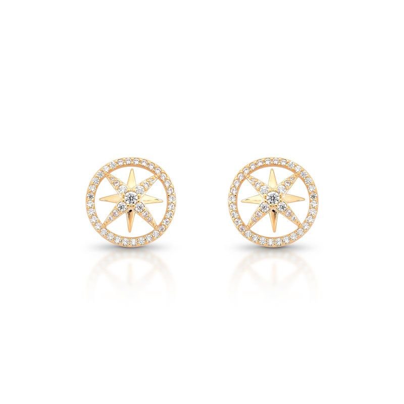 BRINCO REDONDO ESTRELA AO CENTRO COM PEDRAS CRAVEJADAS COM ZIRCÔNIAS TRANSPARENTES