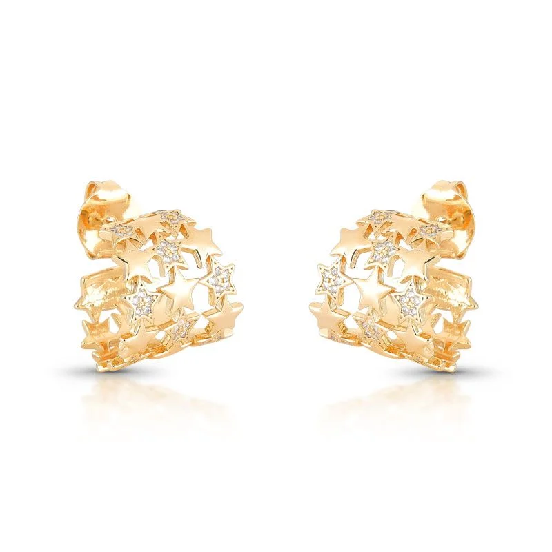 BRINCO BANHADO EM OUR0 18K COM DETALHES EM FORMATO DE ESTRELAS SENDO ALGUNS CRAVEJADOS COM PEDRAS ZIRCÔNIAS