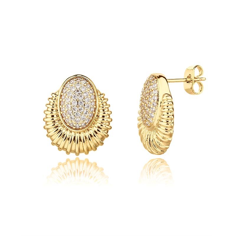 BRINCO TEXTURIZADO COM PEDRA ZIRCÔNIA BANHADO EM OURO 18K