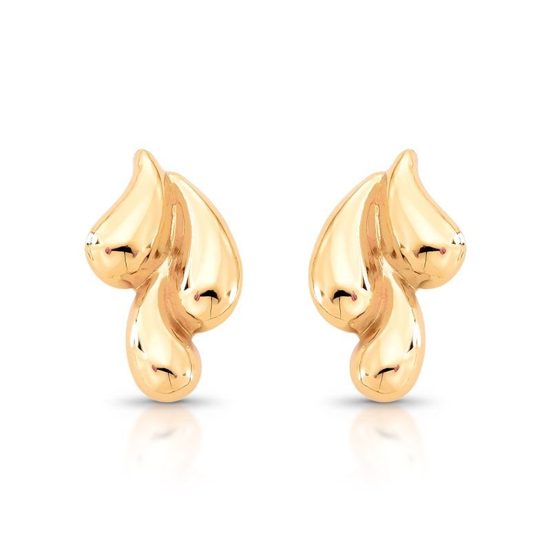 BRINCO TRÊS GOTAS LISO DOURADO EM AÇO BANHADO EM OURO 18K