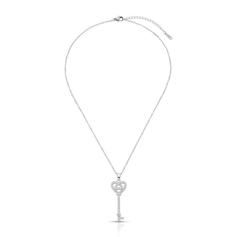 COLAR ELOS DELICADOS PRATEADO BANHO DE RÓDIO COM PINGENTE CHAVE CRAVEJADO COM ZIRCÔNIAS